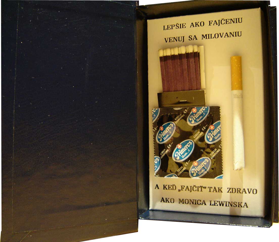 •Kniha, ktorá vo vnútri ukrýva cigaretu, zápalky, prezervatív. Rozmer ca . 16 x 10 x 4 cm.