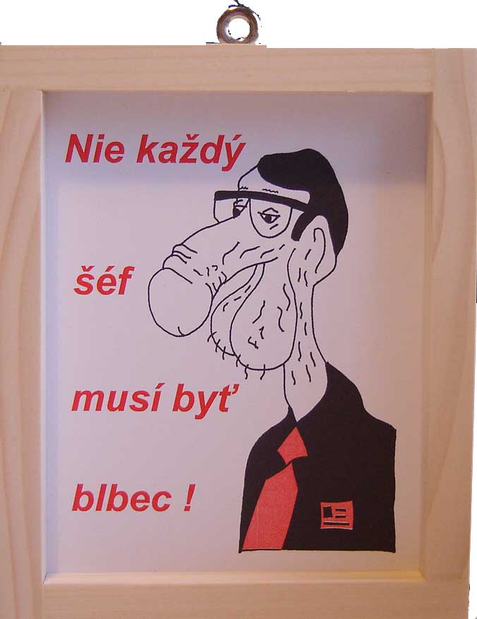 • Drevený rámik s obrázkom šéfa, ktorý nie je blbec, lebo je... Rozmer ca. 15 x 12 cm.