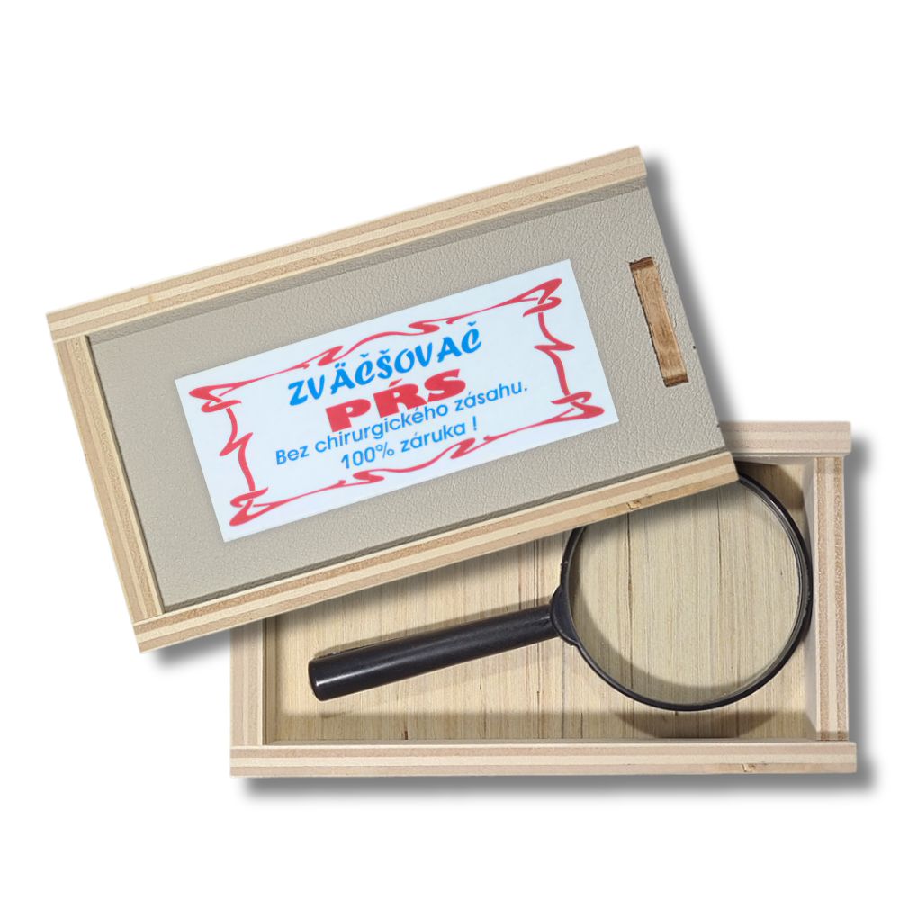 •Drevená krabička s lupou. Zväčší prsia bez chirurgického zásahu ! 100 % záruka. Rozmer ca. 11 x 7 cm.