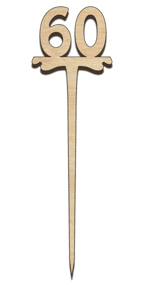 Drevená zapichovačka s vyrezávaným číslom, vhodná na označenie veku, výročia na oslavách a svadbách.