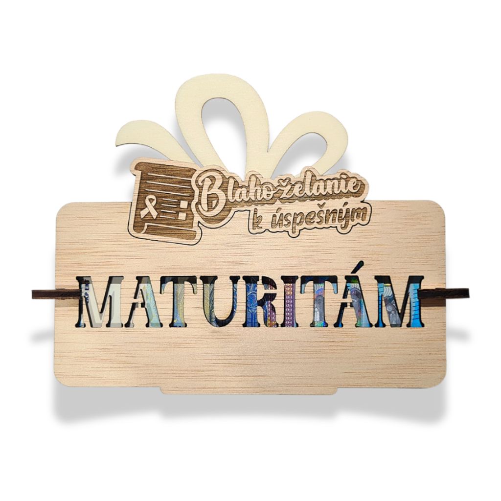 Naša drevená obálka na peniaze s gravírovaným nápisom "Blahoželanie k maturitám" je ideálnym darčekom pre absolventa k maturitám.