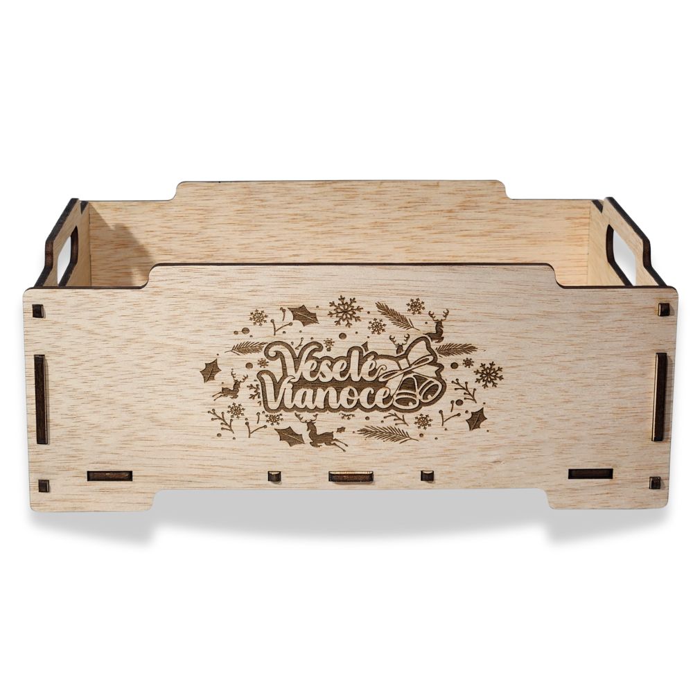 Drevená debnička pre vaše darčeky s vynoveným motívom. Odporúčame skombinovať s našími ostatnými výrobkami pod stromček k vianociam.