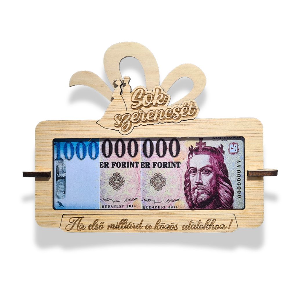 Kívánjon a házasulandóknak sok szerencsét egy eredeti esküvői ajándékkal – a mi "Első milliárd" fa borítékunkkal!