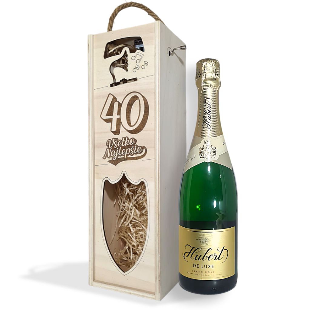 Ďalšie kľúčové slová: darčeková krabička k 40. narodeninám, drevená kazeta na víno, darček pre oslávenca, luxusné balenie na šampanské, obal na narodeninový dar, štýlové balenie na alkohol, darček k 40tke narodeninám, fľaša k 40ke