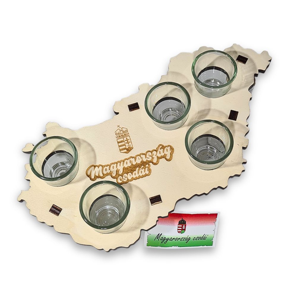 Térképen a világ, poharakban a pálinka – így biztosan nem tévedsz el! Egyedi fa pálinkás szett, amely mindig mutatja a helyes irányt... a következő kupicához.