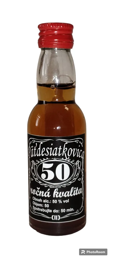 Mini fľaška s výročným motívom naplnená chutnou medovinou.