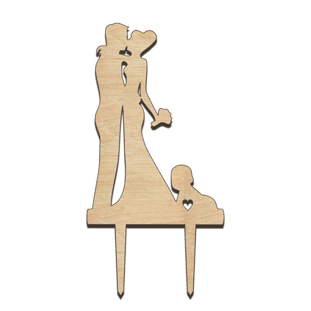 Elegantná drevená zapichovačka znázorňujúca novomanželov. Ideálna ako svadobná dekorácia na tortu, do kytice či darčeka.
