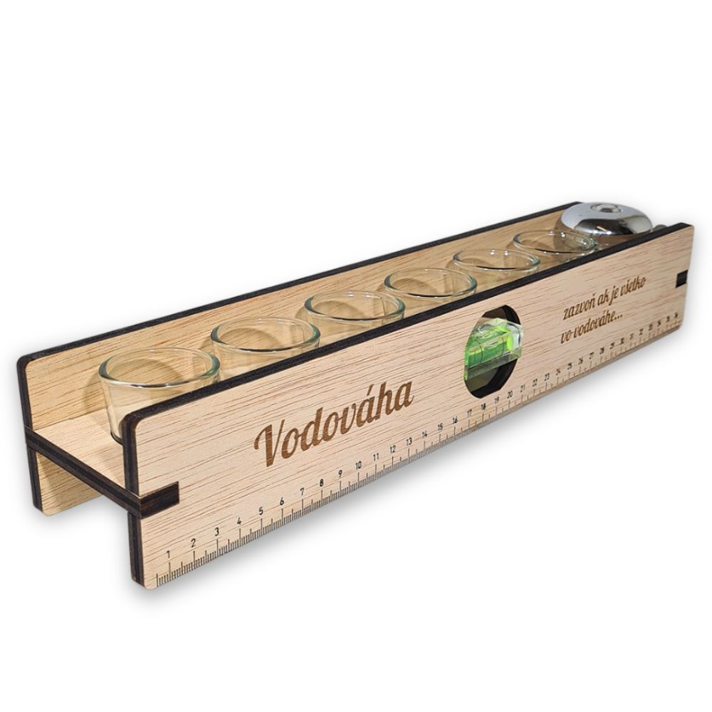Hľadáte darček, ktorý zdokonalí prácu a večierku? Naša Vodováha je ten správny nástroj pre každého, kto si chce dať poriadne záležať na presnosti! Nalievajte 6 štamperlíkov tak, aby boli vo vodováhe, a keď sa vám to podarí, zazvoníte zvončekom. To je signál, že je všetko vo vodováhe. Opakujete, až kým je všetko dokonale vyvážené.