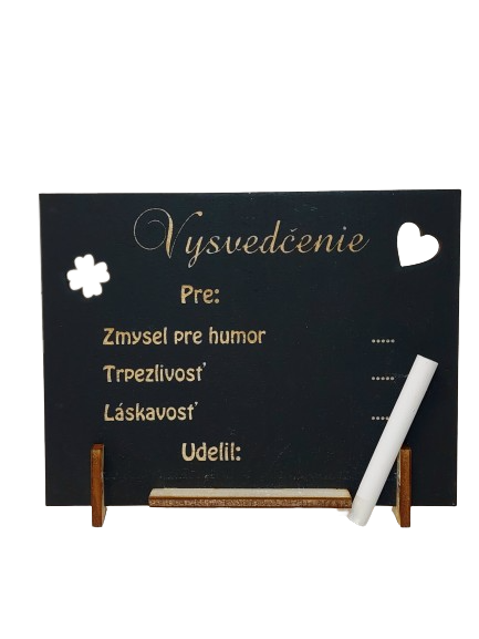 Drevený obrázok ,,VYSVEDČENIE" je darček vďaka ktorému môže žiak ohodnotiť svoju učiteľku.