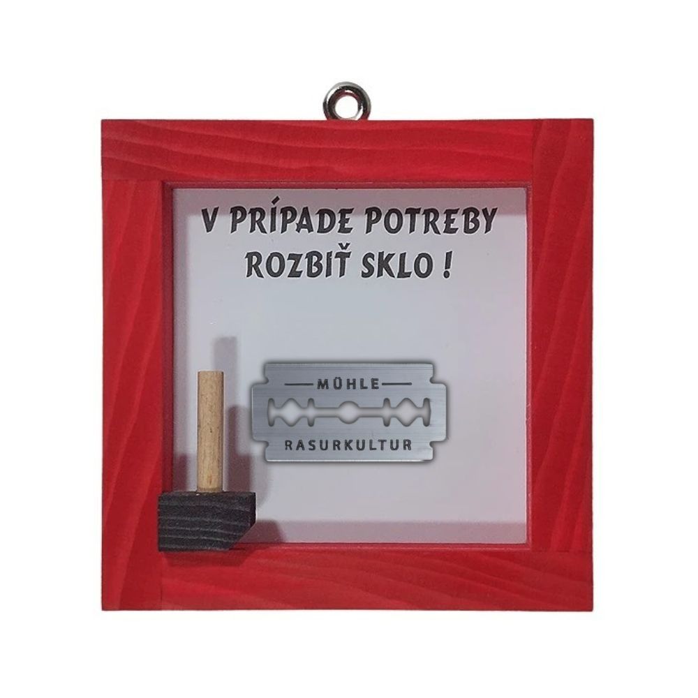 •Presklený obrázok s žiletkou a kladivkom rozmer ca. 12 x 12 cm.